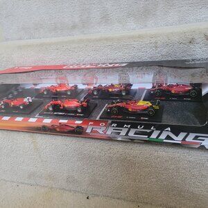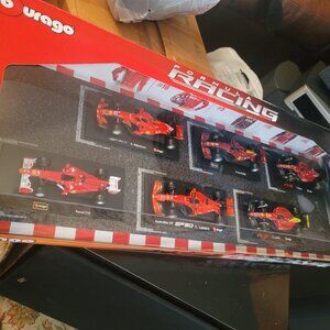 This is for a NEW Bburango Ferrari Formula Racing Car set of six (6). The cars are diecast metal, and each car is 1:43 scale. They measure approximately 4.5” long by 1.5” wide. This is an officially licensed product of Ferrari as noted on sticker on the box bottom.