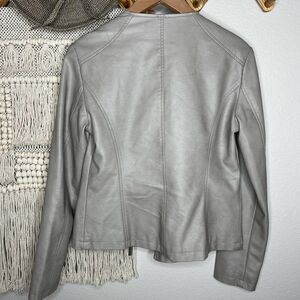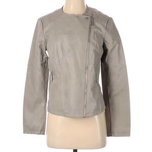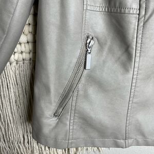 B by Bernardo Gray Faux Leather Jacket Small. Like new, no flaws. Laying flat while zipped up & measuring across, pit to pit is 18”