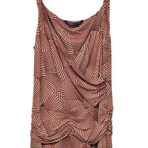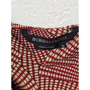 BcBGMaxAzria Geometric Print Ruched Midi Dress Sz Med Retro Party Event Burgundy