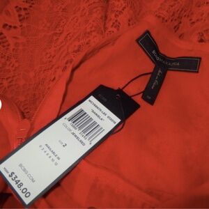 Bcbg Max Azria Daniela Dress Red Lace Bell Sleeve Mini Cocktail Nwt 2