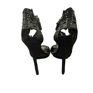Kid suede heels. Black with laser cut details and studs. Side zipper. Super cute. The heel is approximately 4.5 inches. Worn once. size 7 Retail price $235