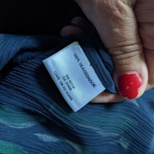 Beautiful and soft as air, navy and green silk chiffon babydoll smocked blouse.