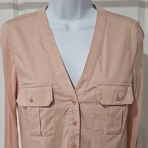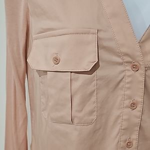 back and sleeves are stretch tshirt soft material roll tab sleeves