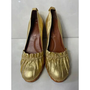 Bcbg Maxazria Gold Leather Platform High Wedge Sandals Womens Sz 38