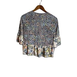 Bcbg Maxazria Immane Mixed-Print Crop Top, Multi Colors. Adorable print ruffle sleeve top. It’s so beautiful in person. Flowy and whimsical. Size xxs however it is oversized with a pit to pit of 18”. The length is 21”. It will fit a small medium just fine.