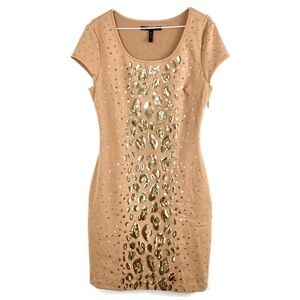 Bcbg Maxazria Leopard Spangles Jersey Stretch Bodycon Dress Camel Tan Size S