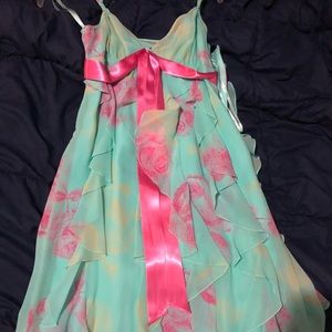 I wore this dress once to a wedding.... it’s a beautiful playful dress.... it’s not fitting around the hits so it flows very well. Will need to be dry cleaned