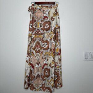 Bcbg Maxi Wrap Skirt Sz XXS Floral Paisley Dusty Rio Red