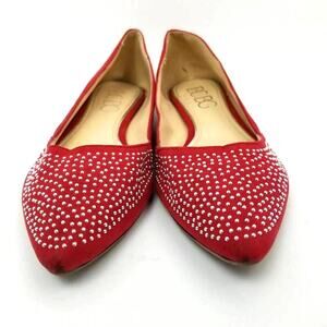 Bcbg Paris Womens Zuzux Ballet Flat Shoes Red Rhinestone Slip Ons 6 B EUR 36