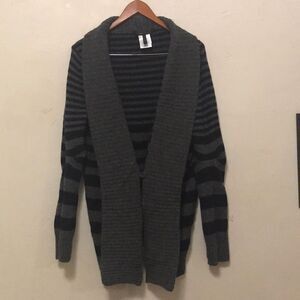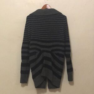 Bcbg maxazaria blue grey striped warm open long sleeve cardigan sweater winter