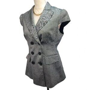 Bcbg maxazria y2k, "hailey", grey, double breasted short sleeve blazer. size: m