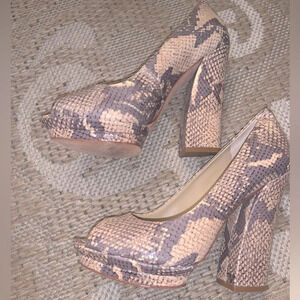 Bcbg runway chunky reptile heels designer boho y2k formal $300 fall mod classic