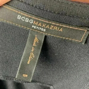 BcbgMaxAzira womens dress size 12P Black blue brown color blocked pencil zip back v-neck cap sleeve career
