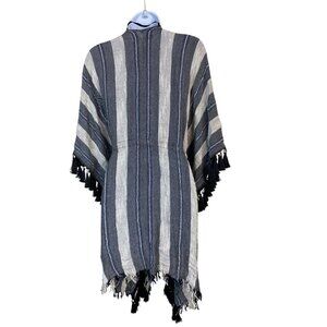BcbgMaxAzria Gray White Striped Fringe Poncho Coverup Size OS Swim vacation