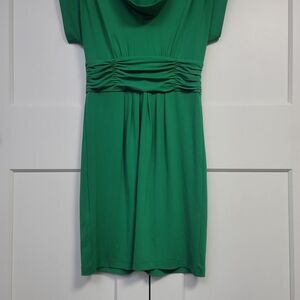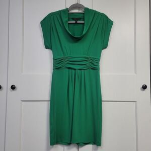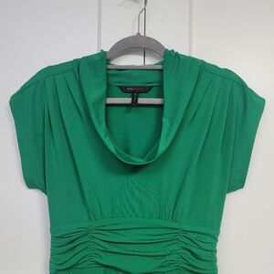 BcbgMaxAzria Green Pleated Sheath Dress with Cowl Neck, Small