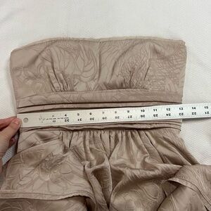 BcbgMaxAzria Taupe Floral Texture Strapless Mini Dress. Size 6 with measurements in the pictures. Gently used condition with no rips or stains.