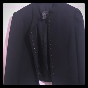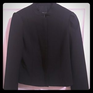 Unique military style blazer with a mandarin collar and hook & eyes to close, great piece to wear to the office, wool blend fabric that can match a diverse selection of pants/skirts. (Price is Firm)