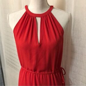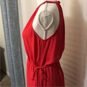 Red/pink bcbg maxazria halter silky dress. Sue medium, tie waist. Very flowey for vacation.