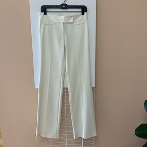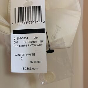 Bcbgmaxazria NWT cream size 0 price tag $218. Silk piping (taxido style) on the sides Inseam 33 see pics for waist size.