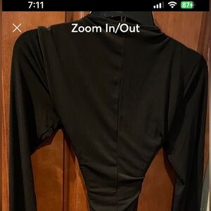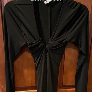 Bcbgeneration medium black long sleeve high low dress. Decorative neckline with with above knee black bodycon front and long cape like back.