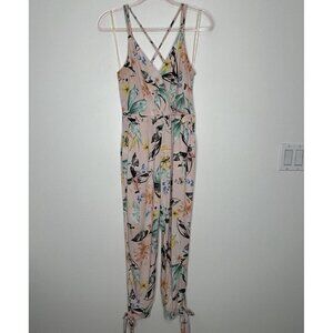 Bcbgeneration Jumpsuit Floral Pink Size S tie ankle Criss Cross Strappy Back
