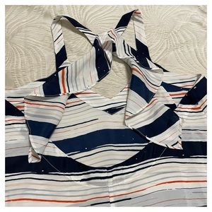 Bcbgeneration Ruffle Open Back Tank. Loose, Flowy tank. Like new. Size Large.
