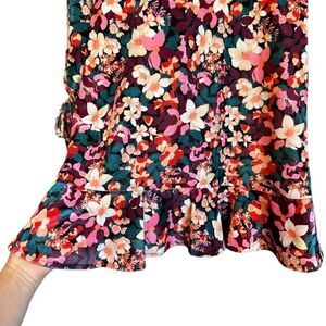 Bcbgeneration Velvet Floral Print Ruffle Trim Colorful Mini Dress New With Tags Size 6