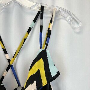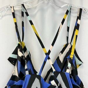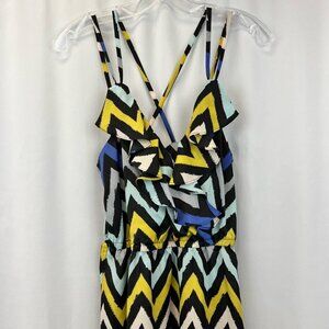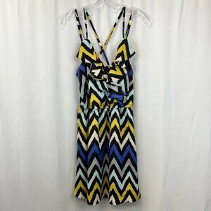 Bcbgeneration Womens A Line Dress Blue Yellow Chevron V Neck Sleeveless Ruffle S
