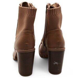 Bcbgeneration Womens Beige 1-1/2 Platform Padded Stretch Pilas Round Toe Stacked Heel Zip-up Heeled Boots