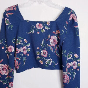 New Without Tag, Bcbgeneretion floral cropped top, blue/pink floral print, long sleeve, square neckline blouse, size large.