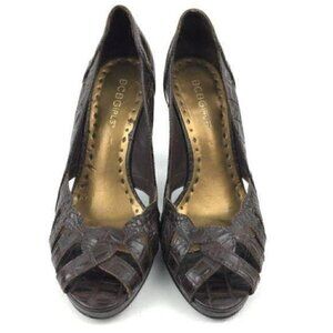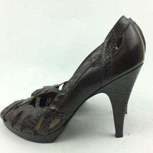 Bcbgirls Womens Heels Size 6.5 36.5 Chocolate Brown Leather Tortoise Print Peep