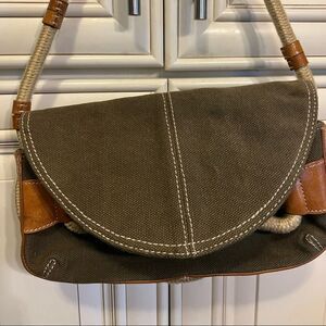 Bcbgirls Purse Brown Khaki Canvas Rope Baguette | Color: Brown/Green