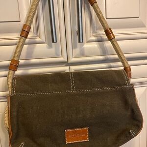 Bcbgirls Purse Brown Khaki Canvas Rope Baguette | Color: Brown/Green