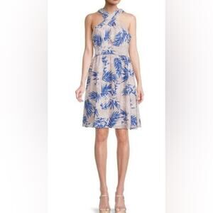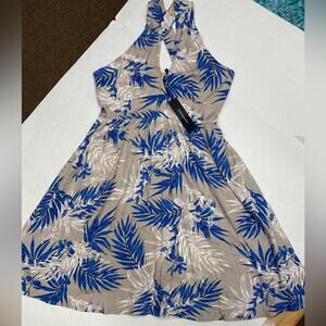 Bcbgmaxazria Beige Tropical Leaf Print V-neck Sleeveless Mini Dress Size Small Nwt
