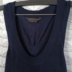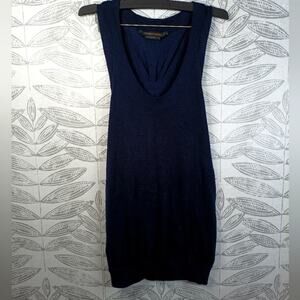 Bcbgmaxazria Blouse Silk Rayon Blend Knit Navy Scoop Neck Sleeveless