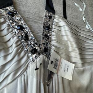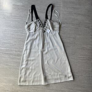 Bcbgmaxazria Embellished Champagne Cocktail Dress NWT Size 12 Rhinestones V Neck
