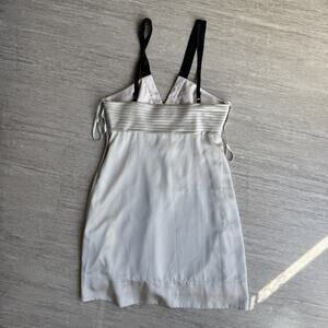 The BCBGMAXAZRIA Embellished Champagne Cocktail Dress is a stunning option for a party or cocktail event. This size 12 dress features a V-neckline and sleeveless design, with rhinestones and beaded accents adding a touch of glamour. Made from 100% polyester satin, the dress has a zip closure and an empire waist for a flattering silhouette. Perfect for summer and spring celebrations, this short-length dress exudes sophistication and elegance, making it a standout choice for any occasion.