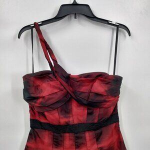 Bcbgmaxazria One Twisted Shoulder Pleated Sleeveless Cocktail Dress Size 6 Red