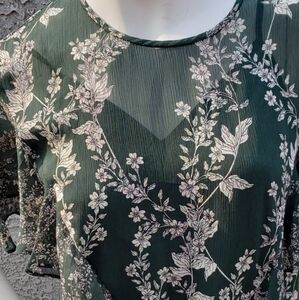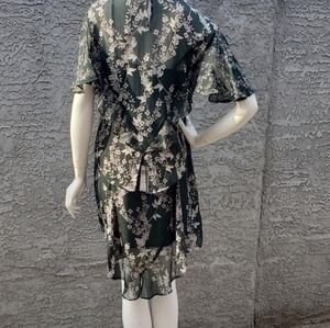 A sketched floral pattern illustrates this airy, slightly sassy skirt cut with a pointed handker
