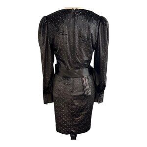 Bcbgmaxazria Womens 6 Velvet Sequin Mini Dress Puff Sleeve ALine Belted Cocktail