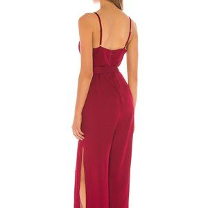 BCBGMAXAZRIA: Faux Wrap Jumpsuit Lightweight crepe fabric with side seam slit.