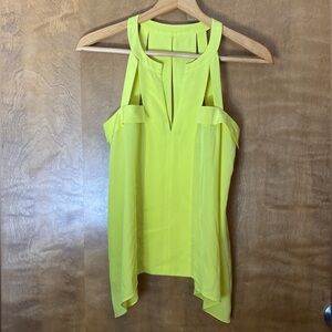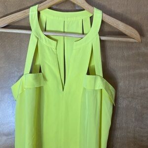 Bcbgmaxazria chartreuse yellow green flowy shark bite strappy sleeveless blouse