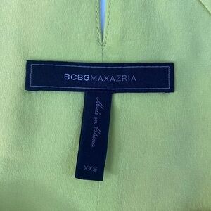 BCBGMAXAZRIA chartreuse yellow green flowy shark bite strappy neckline sleeveless tank blouse top. EUC, size XXS, keyhole button neckline, see pictures for details.