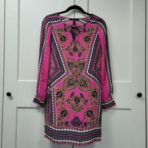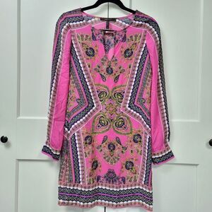 Bcbgmaxazria womens freya longsleeve scarf print tunic dress