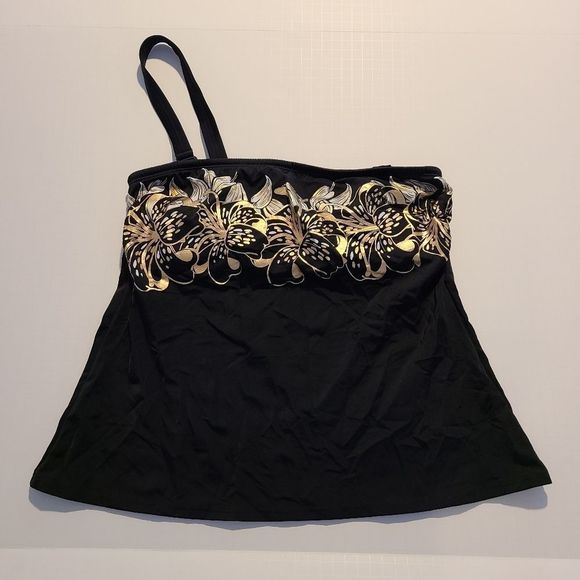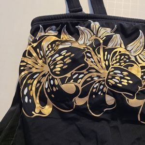 Bcp Selection Halter top Swimwear, size 12, Black with metallic gold and white floral design
