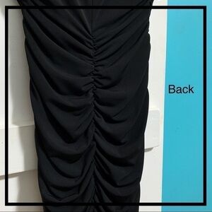 BCX’s ruched party dress served up a little something special with a deep v-back detailed in stringed metallic beads. Juniors’ dress, cowl neckline, pullover style, cap sleeves. Ruching at side and back seams. Deep V-neckline at back with beaded detail and strap at yoke. Fitted silhouette, fully lined. Hits at thighs. Dress: 95% Polyester, 5% Spandex. Lining: 100% Polyester. Hand wash, line dry. Worn once and in excellent condition. See comments below for approximate measurements.