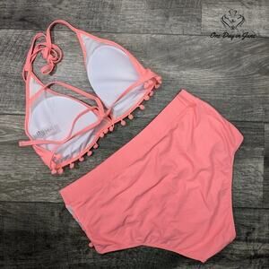 Bdcoco High Waist Halter Tassel Bikini Swimsuit Size XL