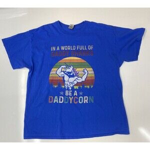 Be A DaddyCorn in a Daddy Shark World blue short sleeve graphic t shirt size XL