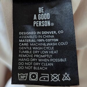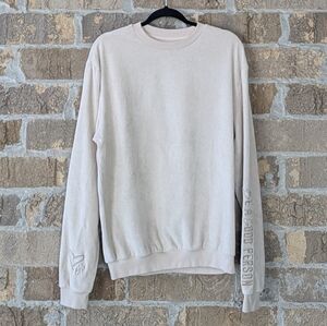 Great preowned condition long sleeve terrycloth pullover sweatshirt from Be A Good Person. Designed in Denver Colorado. Crew neck. Monochromatic neutral light beige color way. Embroidered heart and spellout detailing on sleeves. Reinforced ribbed knit at collar, cuffs and hem. Sustainable materials 100% cotton. Machine washable. Clean. No flaws.