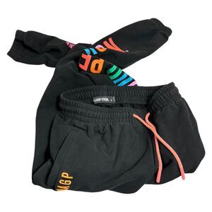 positive message sweatpants, multi-colored, size XS, casual wear, pre-owned clothing, comfortable fit, uplifting apparel, everyday style, cozy pants, feel-good fashion